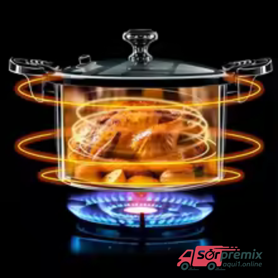 Reduce el tiempo de cocción en en un %30 hasta un 70%, ideal para menestras, sopas, estofados y platos típicos como ají de gallina o seco de res.